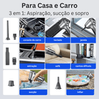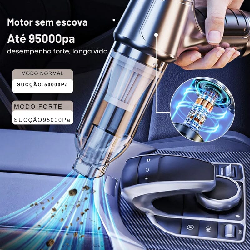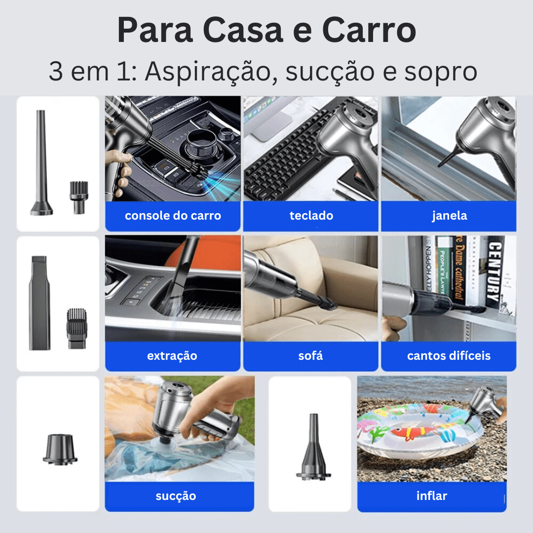 Com o Aspirador de Pó e Água Portátil, você terá um único aparelho capaz de lidar com sólidos e líquidos, oferecendo uma limpeza profunda e completa. Ele combina potência máxima com portabilidade extrema, sendo ideal para todas as situações, seja em casa, no carro ou no escritório.