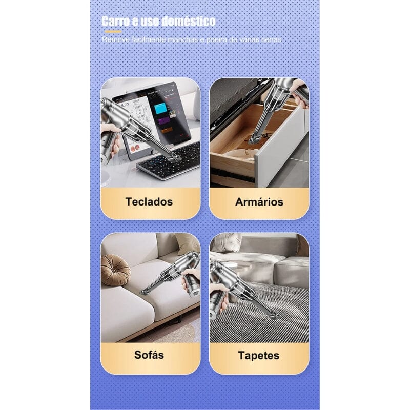 Com alta potência e longa duração da bateria, o Aspirador de Pó Portátil garante resultados de limpeza impressionantes sem comprometer a praticidade.